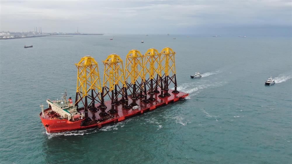 循序漸進邁向完工 台電一期示範風場第三、四批套筒式水下基礎安全抵台