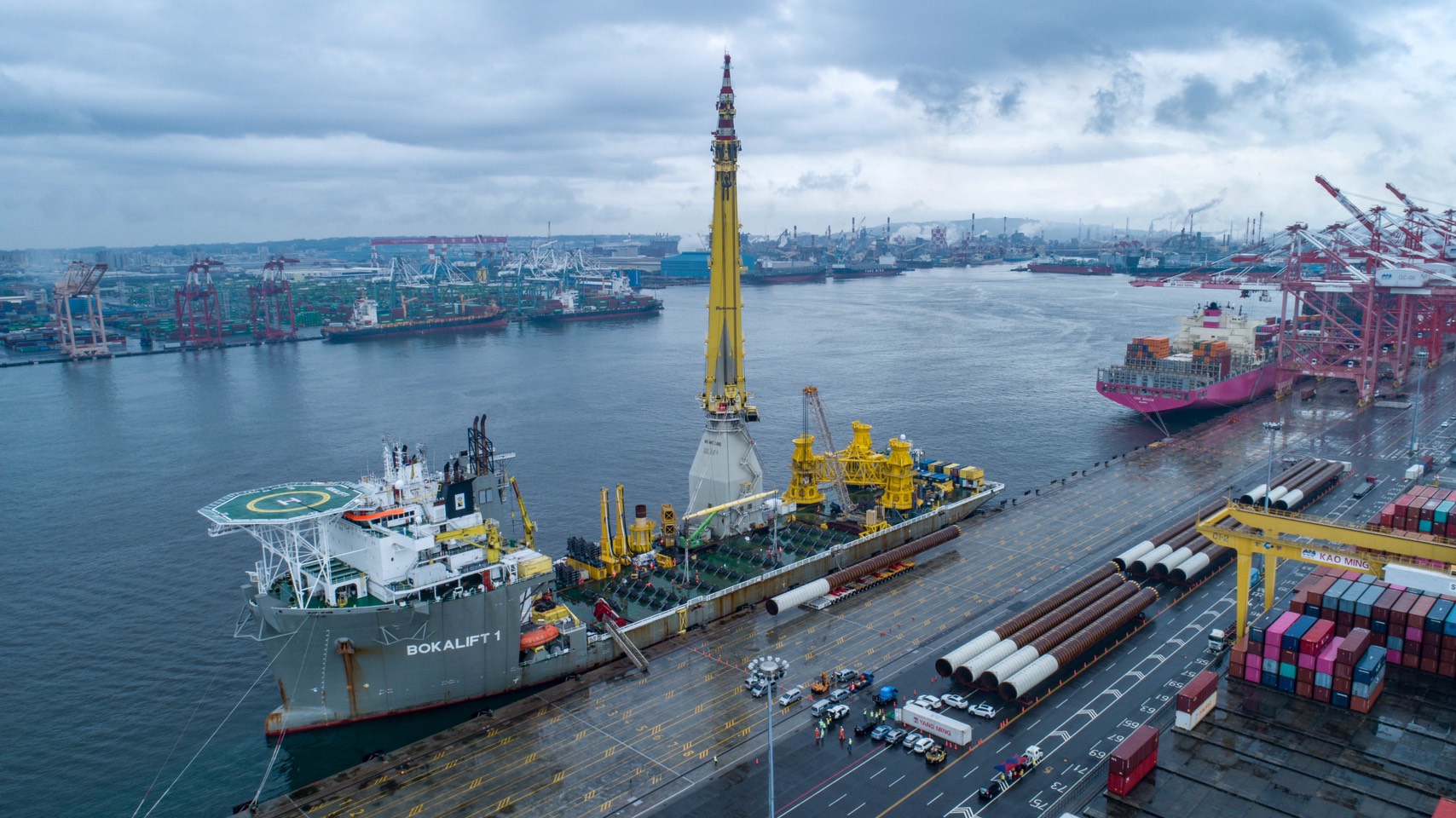 圖說:彰芳西島風場所使用的水下基樁,平均長度近70公尺且重達320公噸,將從高雄港出發前往彰芳西島風場場址進行安裝。