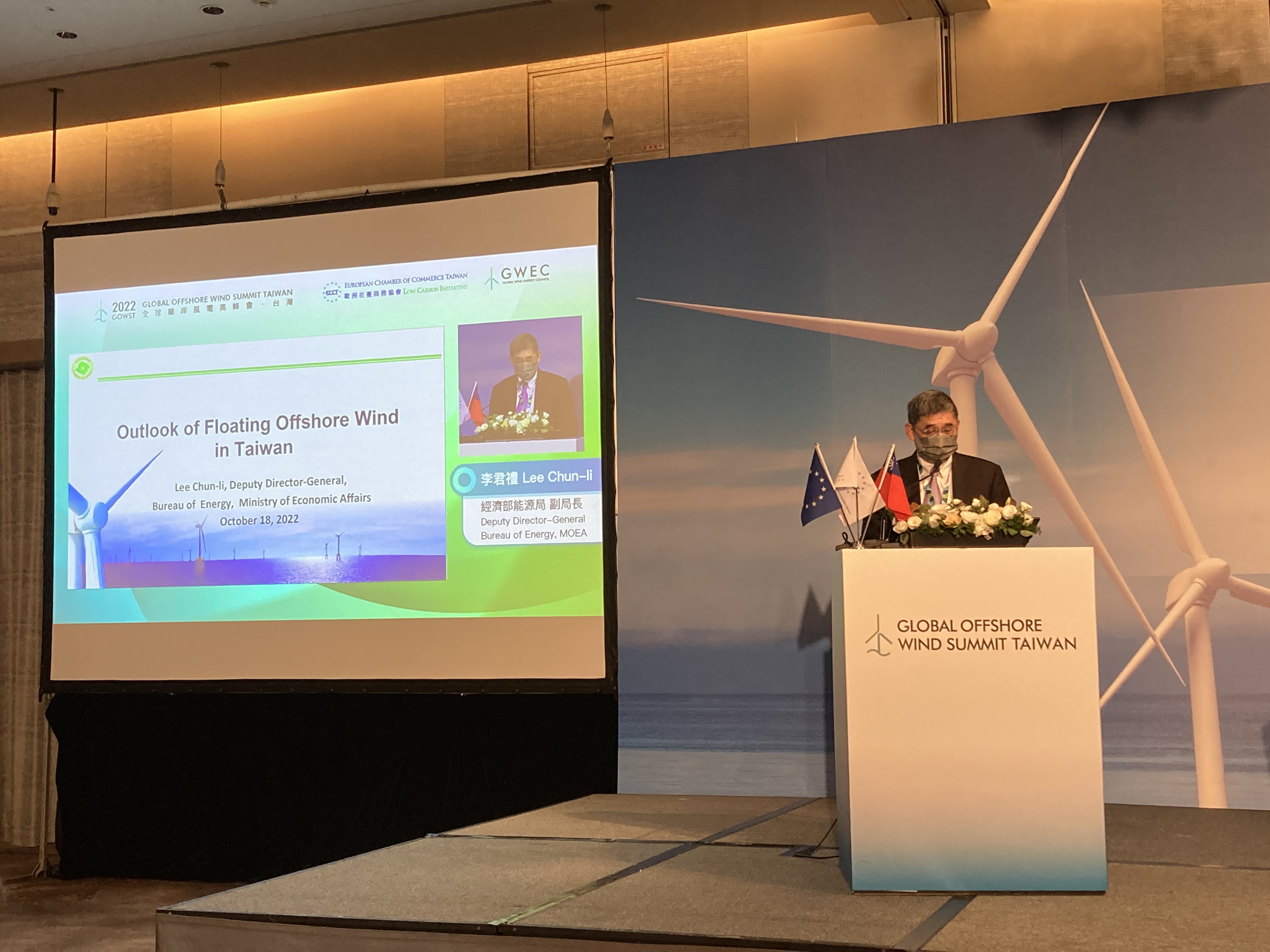「2022 全球離岸風電產業高峰會——臺灣論壇」進入活動第二天,「浮動式風機論壇」由全球風能理事會亞洲總監 Mark Hutchinson 主持,經濟部能源局副局長李君禮進行開場演說。