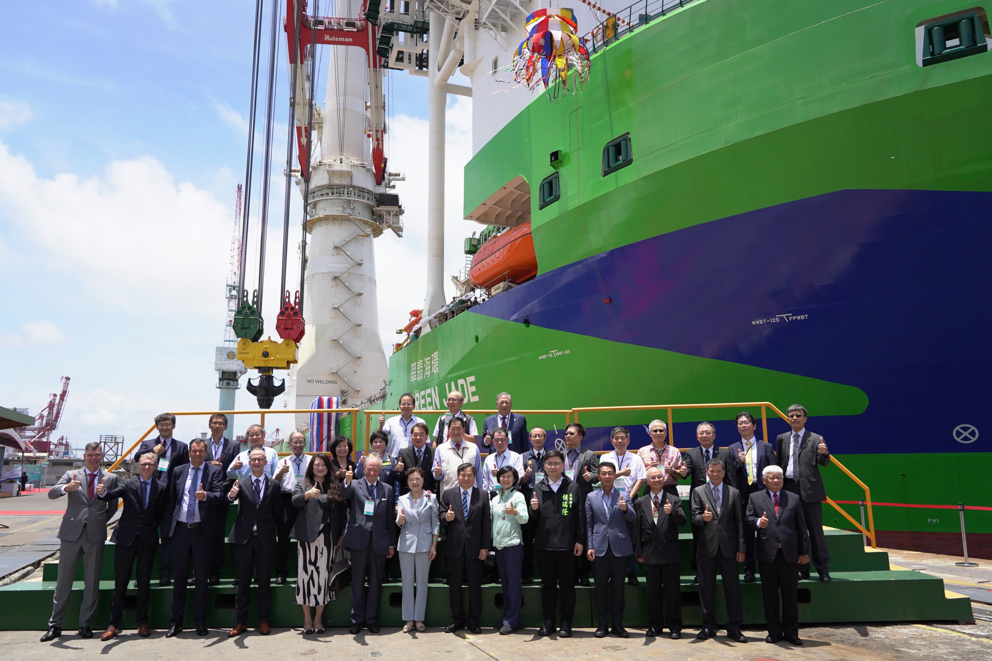 台灣國際造船股份有限公司(以下簡稱台船)歷時三年的建造,於今年六月底完成台船環海風電工程股份有限公司(CDWE,以下簡稱台船環海)委由台船建造之環海翡翠輪(Green Jade)各項測試並取得證書,於今(30)日上午舉行交船典禮。