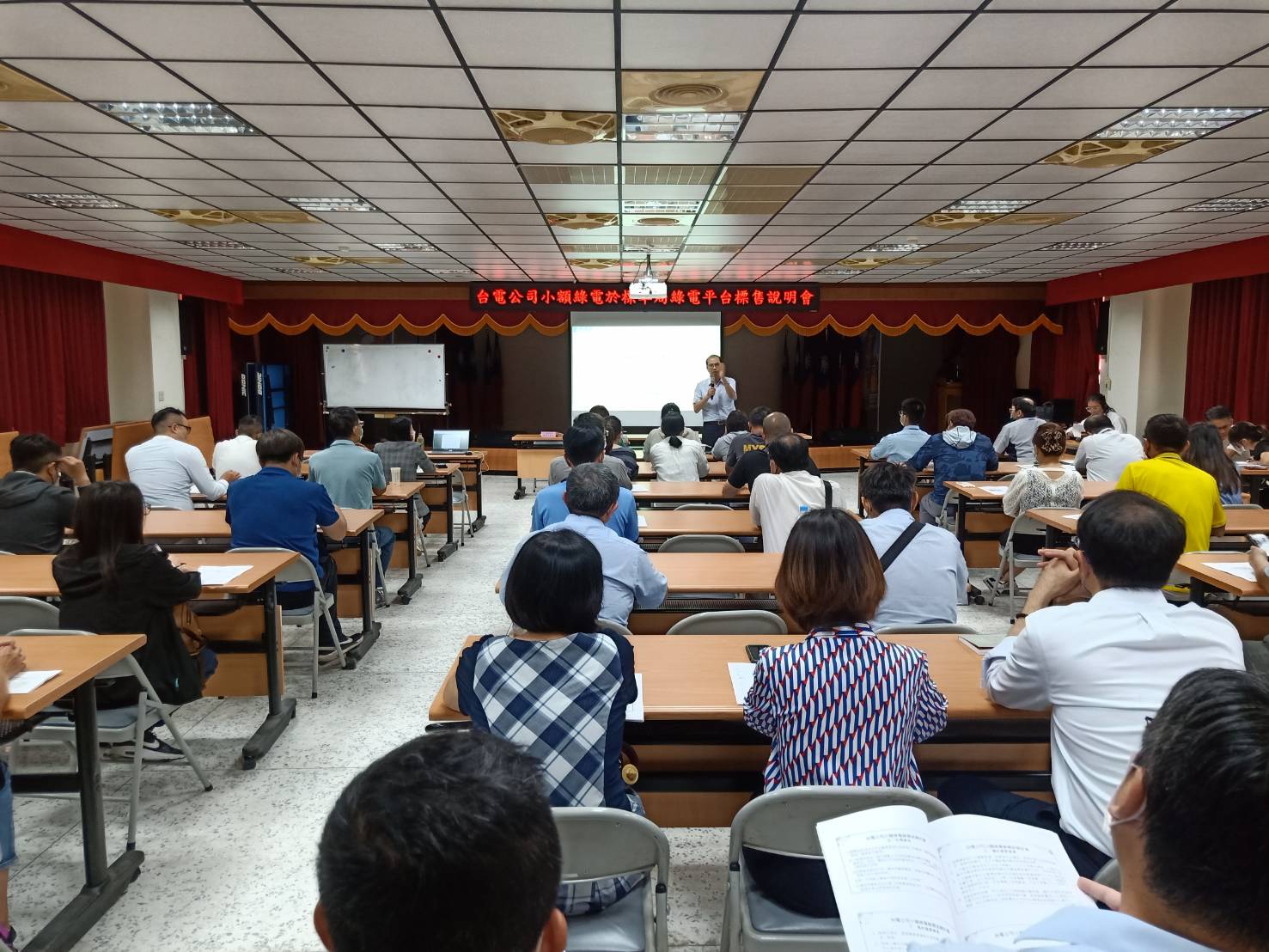 台電公司小額綠電於標準局綠電平台標售說明會高雄場現場,參與業者踴躍,坐滿禮堂會場。圖片來源:WindTAIWAN
