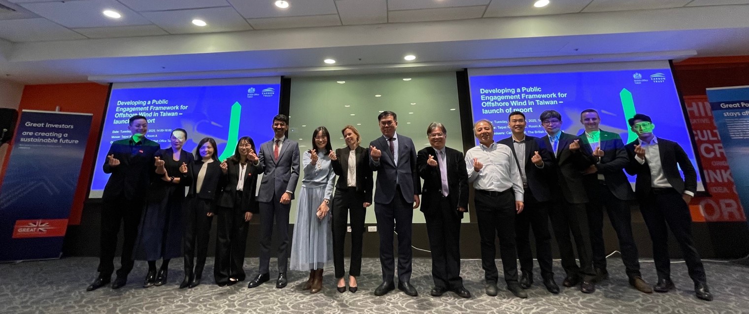 英國在台辦事處與英國碳信託顧問公司(Carbon Trust)於 11 日共同舉辦「台灣離岸風電的公眾參與框架」報告發布會,針對台灣離岸風電發展提出具體建議。報告指出可參考英國經驗,建立並強化公眾參與的框架,以加強溝通協調機制。