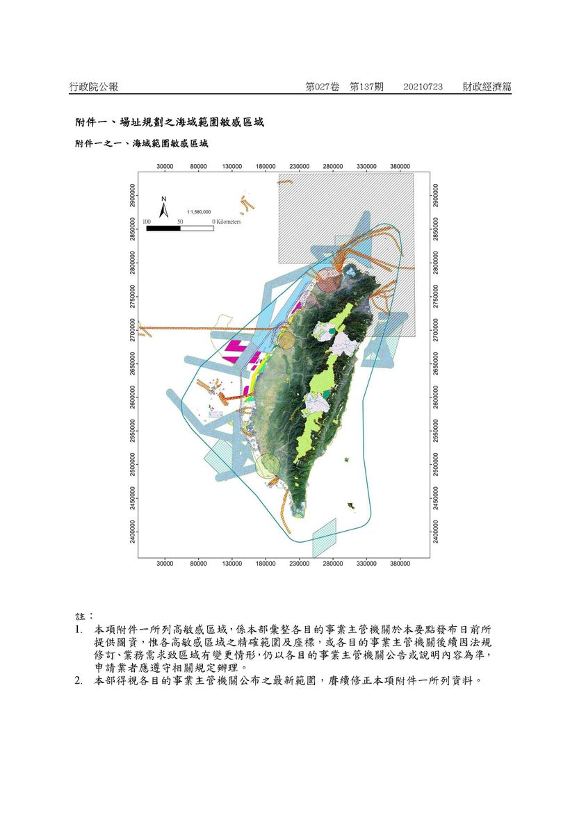 經濟部說明,參考過去推動經驗,為提早讓業者了解除了法定限制開發海域外,其他不適開發區域,經濟部於本要點公告前,已多次透過跨部會溝通釐清海域敏感範圍,包括如北方三島漁場、南北通行航道等區域,明確提供開發業者規劃場址參考,以利及早避開投入資源於海域敏感範圍,可有效減少開發爭議及後續調整場址衍生的時間及成本。相關詳細資料已刊載於7月23日行政院公報,有意投入開發離岸風電的業者可以上網查詢。