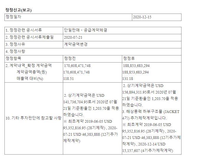 另外,Samkang M&T 也在文件中列舉各階段合約簽訂日期、金額及生產項目經整理如下: