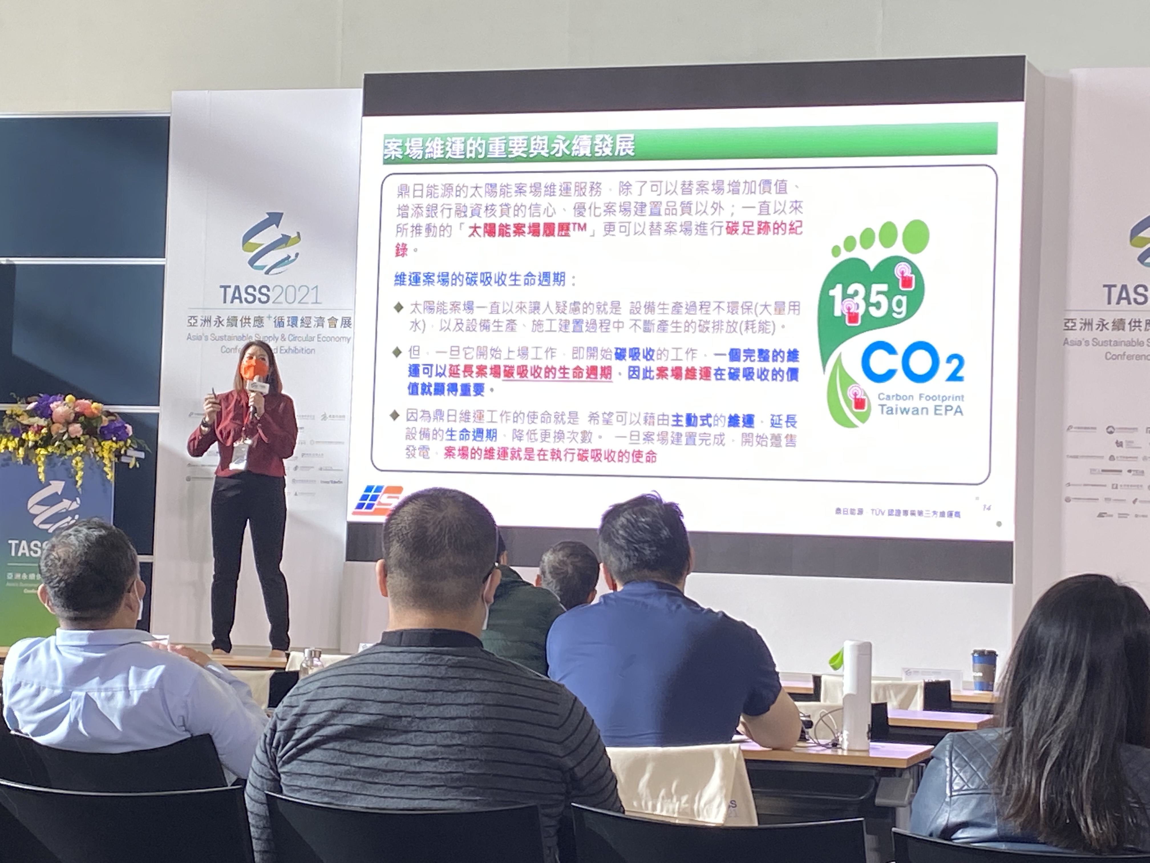 鼎日能源王依婷董事長,從近年國際再生能源發展背景開始說起,包含最早期的氣候公約,希望經濟發展是以「可持續」的方式進行、到1990年至2015年的京都議定書,參與會員國有一致共識需將溫室氣體含量穩定在一個適當的水準,還有2015年的巴黎協議,明確訂定出對於降低溫室氣體的框架,並由各國自主推動,並於每5年檢視減排成績。另外,王董事長也特別提到,全球暖化氣候變遷,綠電已經被視為未來主流電力,不管是太陽能發電、風力發電或是其他再生能源的發展在近年都有著顯著發展,預估到2025年,再生能源將可望達到62%的占比,另外也特別指出同一時間(2021年11月11日),在英國也正舉行著2021年聯合國氣候變遷大會,主要議題聚焦在加速電動車發展、燃煤電廠成為歷史、結束砍伐森林及減少溫室氣體等五項內容,顯示應對氣候變遷,全球暖化等議題,不分國內外都是受到各國相當重視的議題。