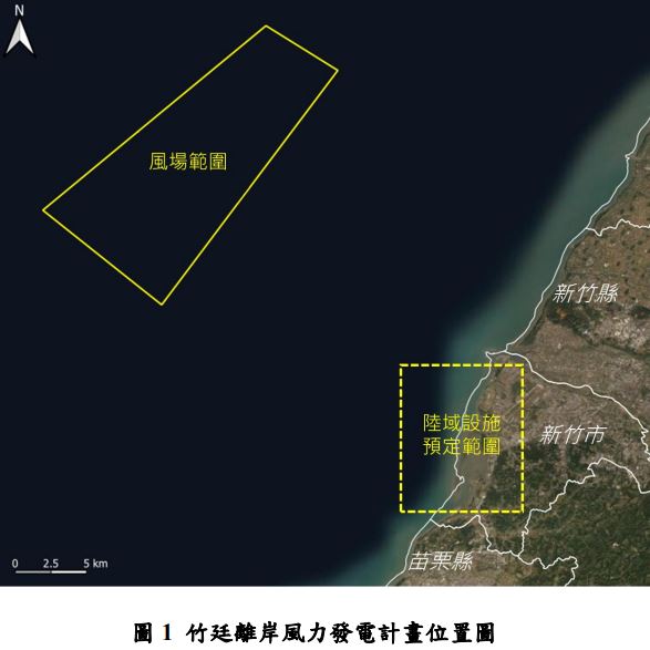 該風場位於新竹市及新竹縣外海,風場面積約 182 平方公里,離岸最近距離約 22 公里;風場範圍水深約介於 60至90 公尺,預計採用浮式平台及單機容量 9至20 MW之風機,風場總裝置容量不超過 1.2 GW。風場之海纜預計於新竹市上岸,並連接至陸域之自設升(降)壓站後,續依既有道路鋪設陸纜,連接至台灣電力股份有限公司之變電站(所)。