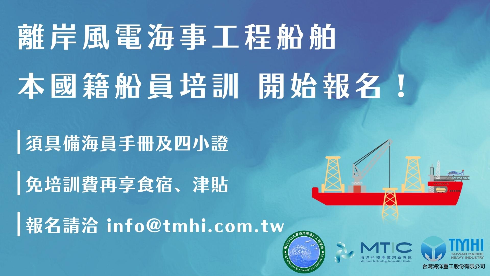 台灣海洋重工與海洋科技產業創新專區(MTIC)、國立中山大學(NSYSU)共同推出的「離岸風電海事工程船舶船員培訓計畫」自 2021 年起已完成多個梯次。許多優秀的學員在完成培訓後,陸續投入離岸風電海事工程船舶,開始在臺灣離岸風場努力!
