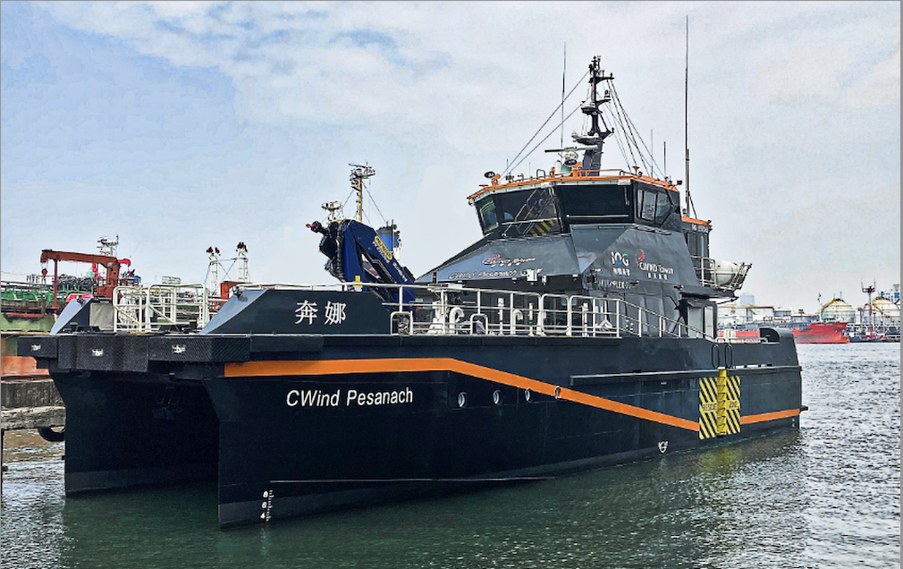 由 CWind 和國際海洋(IOVTEC)合資成立的臺英風電(CWind Taiwan)日前宣布,將收購一艘人員運輸船(CTV)奔娜輪(CWind Pesanach),以進一步增強在臺灣離岸風電市場船舶需求的供給。目前奔娜已完成換旗抵達高雄港,加入臺英風電船隊。預計將於今年四月投入支援彰化外海的離岸風場專案。