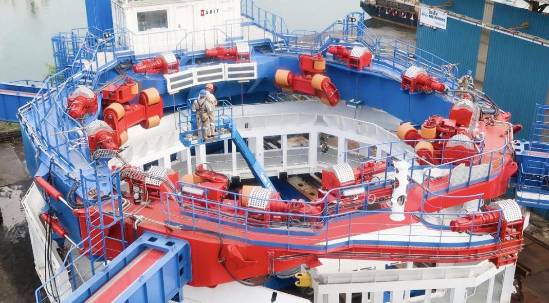 製造完成後,Osbit 交付的夾樁系統將配置於 DLS-4200 船舶上,搭配同樣由 Osbit交付的導正絞鍊(Upending Hinge)進行使用。