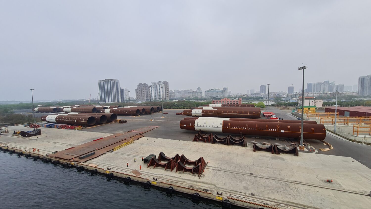 允能風場單樁式水下基礎存放區。圖片來源:Havfram