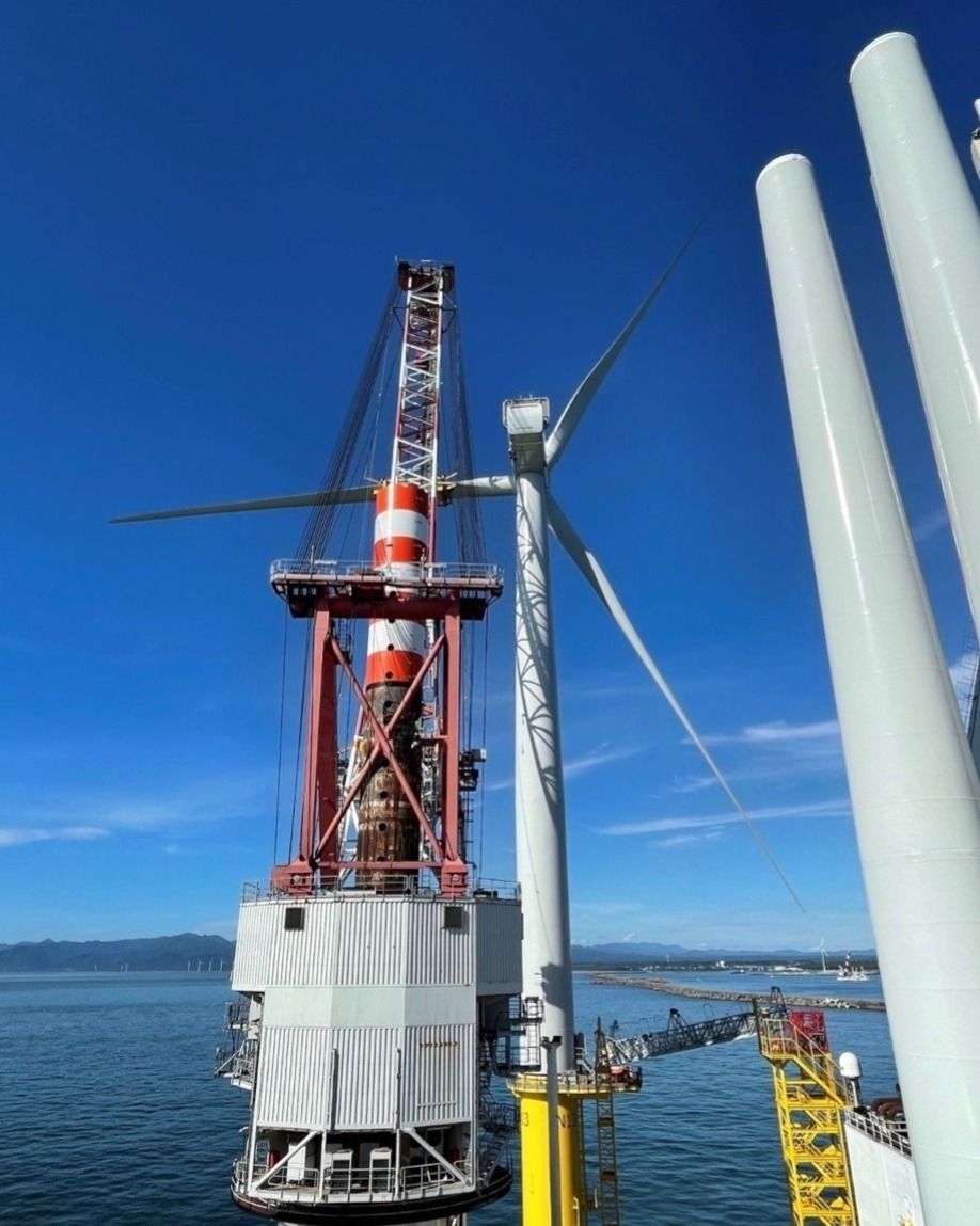 日本首座商業規模離岸風場——秋田能代(Akita Noshiro),採用固定式水下基礎安裝 33支 Vestas 4.2 MW 風機,目前已完成第一座風機安裝作業。