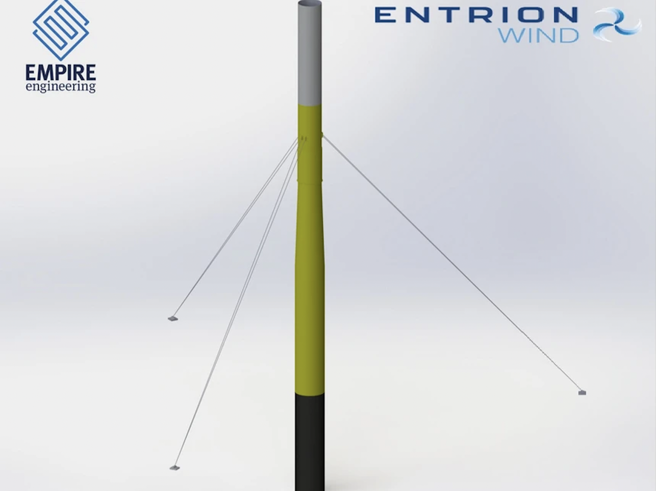 Entrion Wind 在 2020 年時,對 FRP 單樁基礎進行了概念驗證研究。該專案模擬了 40 公尺至 100 公尺水深時,在轉接段上方乘載重達 800 噸、10 MW 風機的情形下,不同的 FPR 單樁結構配置。 並於去(2021)年於美國麻州展開水深 35~80公尺的可行性研究,以評估該單樁概念是否適用於特定地點;估計資本支出、營運支出對均化能源成本(LCOE)的影響,並辨識和評估專案的風險和機會。