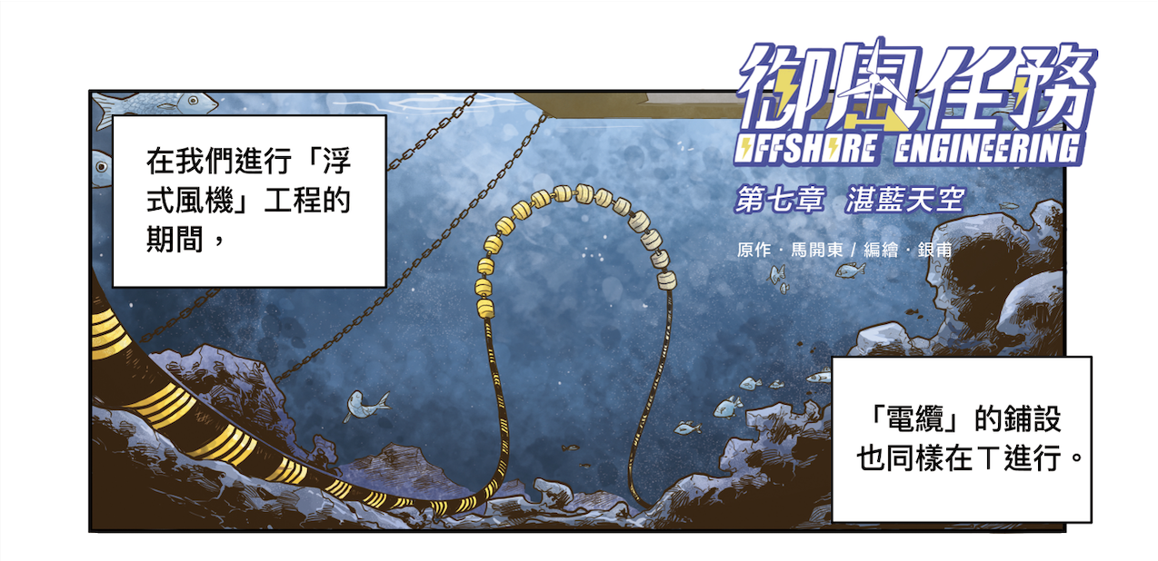 漫畫中介紹浮動式離岸風電,讓讀者了解其原理及應用方式。故事結合建設離岸浮式風電的不同公司團隊,並介紹其職責及重要性,以及在建設風場過程中所扮演的角色。也將介紹建造浮式風電的設備和工程船隻,以及離岸半潛式風機及平台的各部件,分別如何使離岸浮式風機運作。完整的科普知識,穿插浮式風電、固定式風電的比較,讓讀者可以接收更詳細的資料,以及了解發展浮式風力發電機的重要性。更近一步說明發展過程中可能的問題、風險,以及發展上的難處,邀請讀者們一同深入思考。