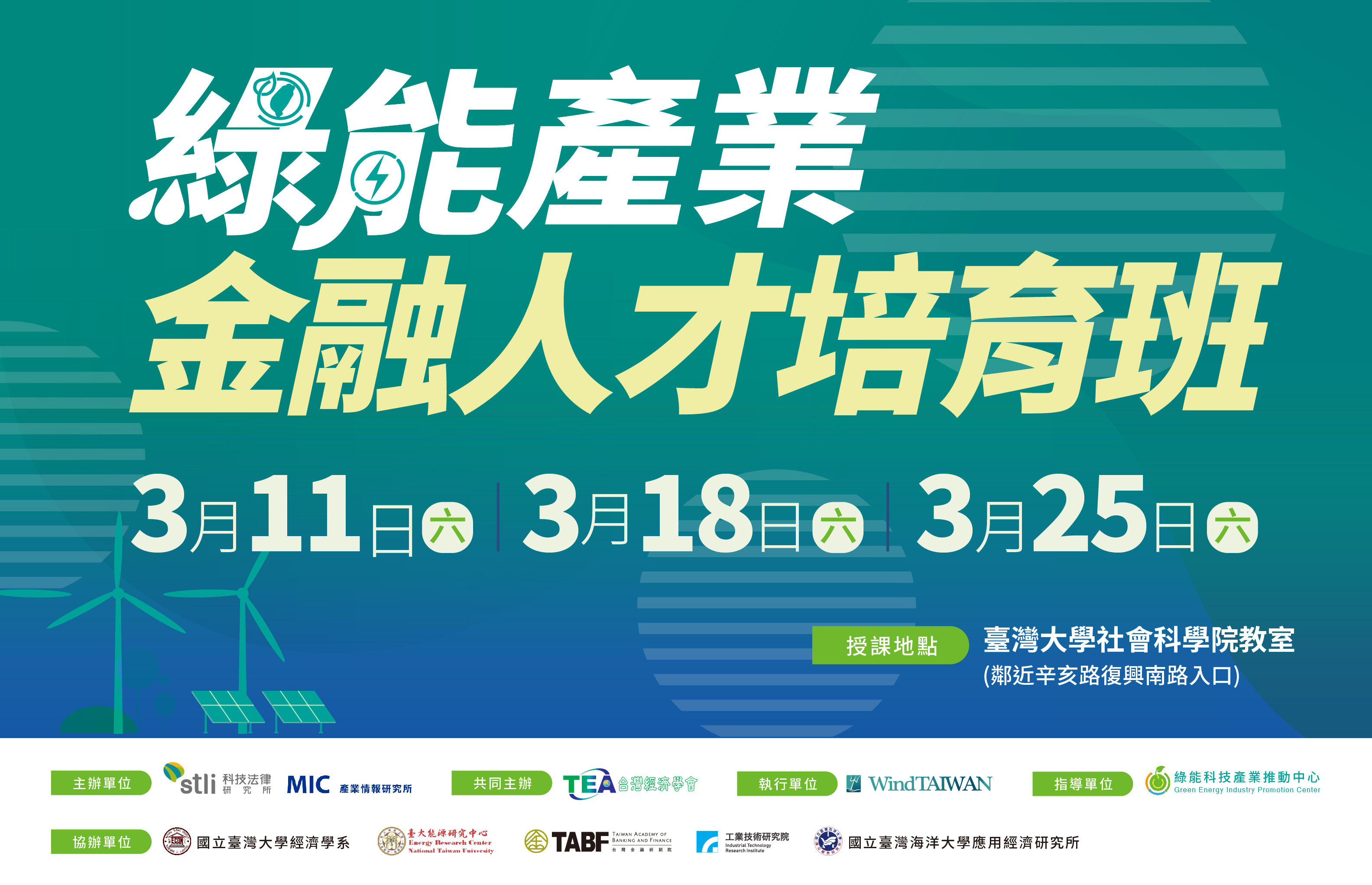 因此,本課程預計邀請具參與綠能產業金融實務經驗的金融業者、律師事務所、企業顧問與開發商分享其專業見解,盼以各家專業經驗輔助學員瞭解綠能產業相關金融議題,培育更多未來綠能產業金融人才,活絡台灣淨零轉型與經濟發展之動能。