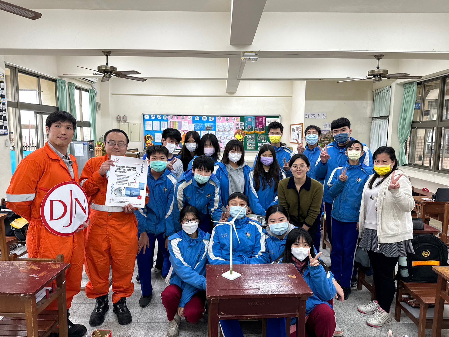 比利時商楊德諾擁有豐富的風力發電工程承攬經驗,近日透過舉辦 JDN goes to school 課程(Renewable energy into the classroom)走入國高中校園,提倡永續概念、綠電知識、以及介紹離岸風電產業。 JDN goes to school 截至目前已進入 5 間學校、 9 個班級、觸及將近 300 位學生。