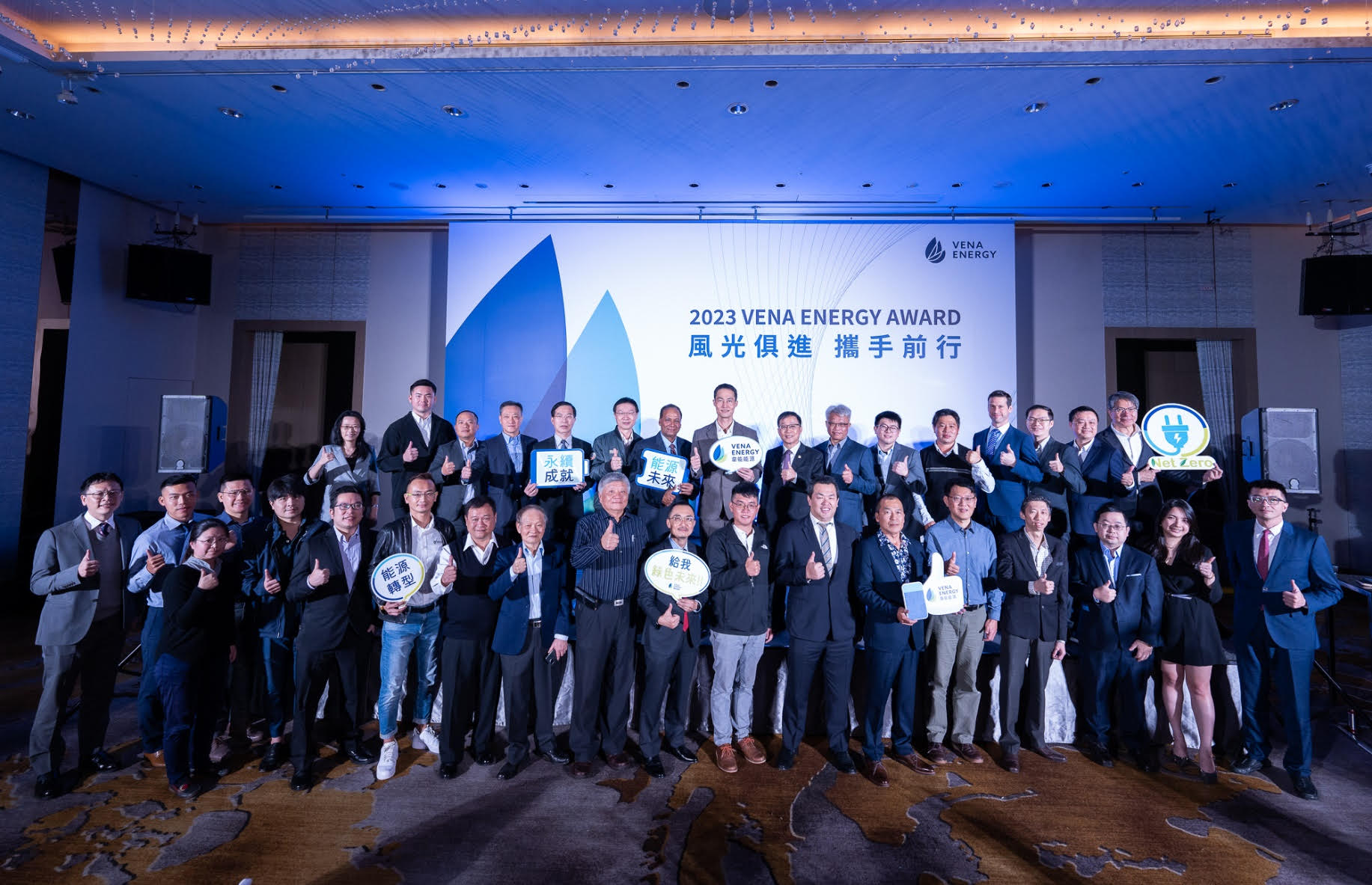 韋能能源於本(3)月 1 日舉辦供應商表揚大會,肯定與感謝供應商的支持與投入,也邀請到台灣經濟研究院研究一所陳彥豪所長,在會中與供應商分享再生能源的現況與趨勢。從國際倡議、政策法規、市場機制了解綠能商機多元樣態與商業模式,韋能能源和供應商協力,加速臺灣能源轉型,實現淨零目標。