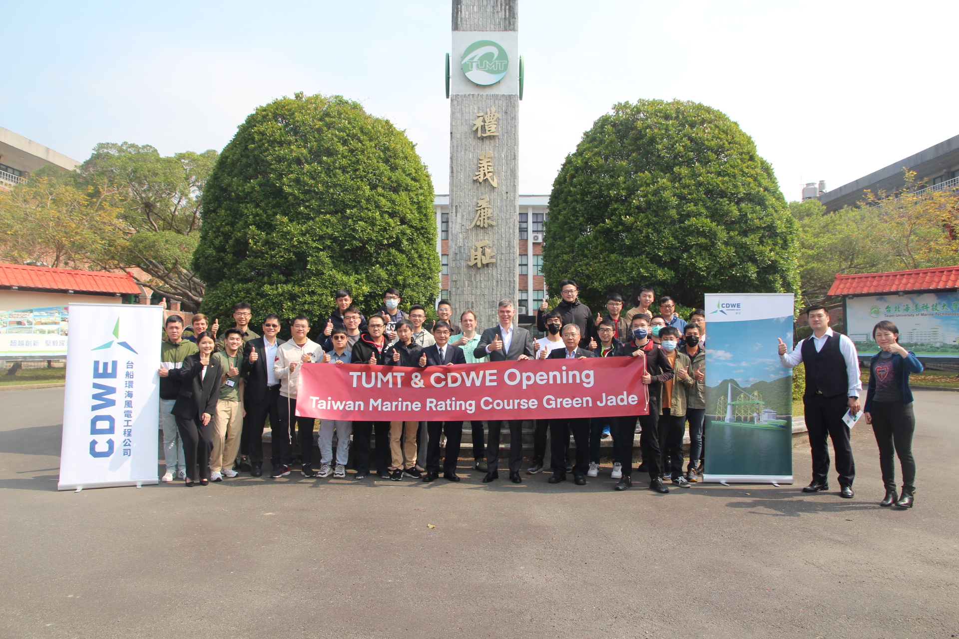 台灣國際造船股份有限公司(以下簡稱台船公司)旗下之台船環海風電工程公司(以下簡稱台船環海)與台北海洋科技大學攜手合作開立的「離岸風電乙級船員訓練專班」前(20)日於台北海洋科技大學國際會議廳正式開訓,將培訓出臺灣首批之海事工程專業船員。學員們在接受 8 週完整的培訓課程後,將取得乙級船員之資格並可投入由台船環海投資興建之大型海事工程船「環海翡翠輪」服務。