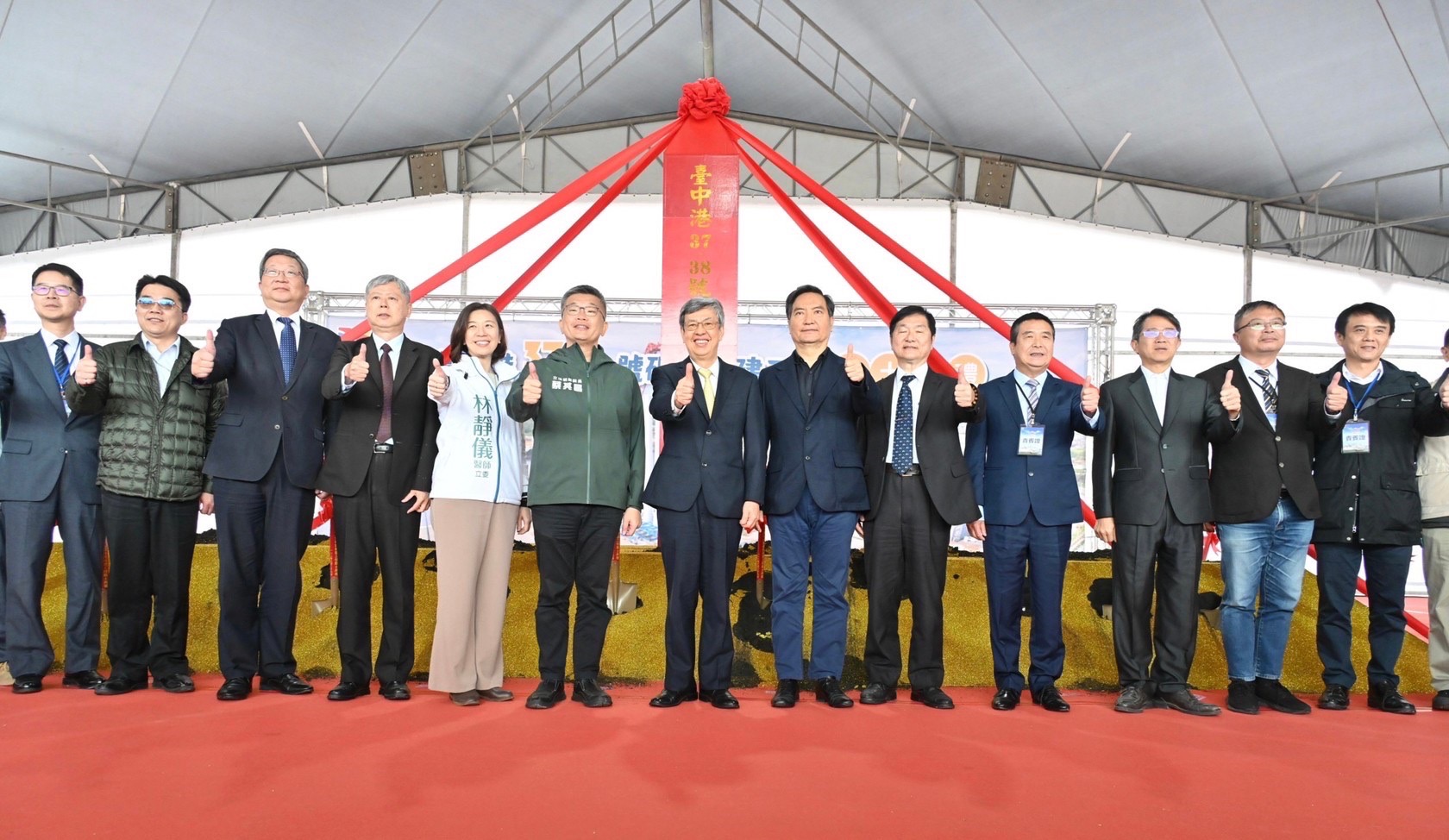 行政院長陳建仁於昨(26)日率行政院、交通部、經濟部及各機關代表出席「臺中港 37、38 號碼頭新建工程」動土典禮,表示我國自 2017 年推動「風力發電 4 年計畫」,截至目前已設置 197 座以上離岸風機,為興建更多座風機設施,臺灣需要好的港口作為調度樞紐,臺中港是我國目前發展規模最大的風機預組裝、風電國產化、風電人才培育及港勤運維基地,為布局下一階段的風場開發,政府再投入 35 億元新建 37、38 號碼頭。據悉臺中港新建中的 37、38 號碼頭,岸線長度共 580 公尺,每平方公尺乘載力最高可達 40 公噸,預計 115 年後可供離岸風電第三階段區塊開發使用。