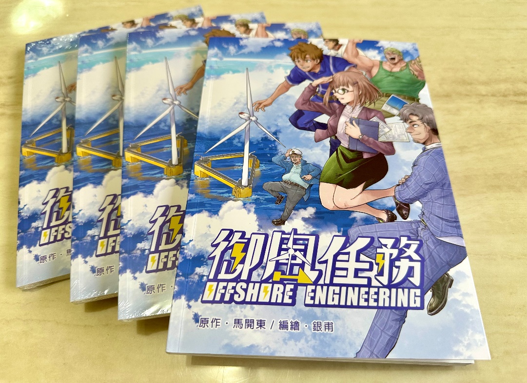 這本由臺大教授馬開東所著作的科普書籍,以漫畫的方式,用故事來介紹離岸風電「浮動式風機」的規劃、建造、安裝過程,