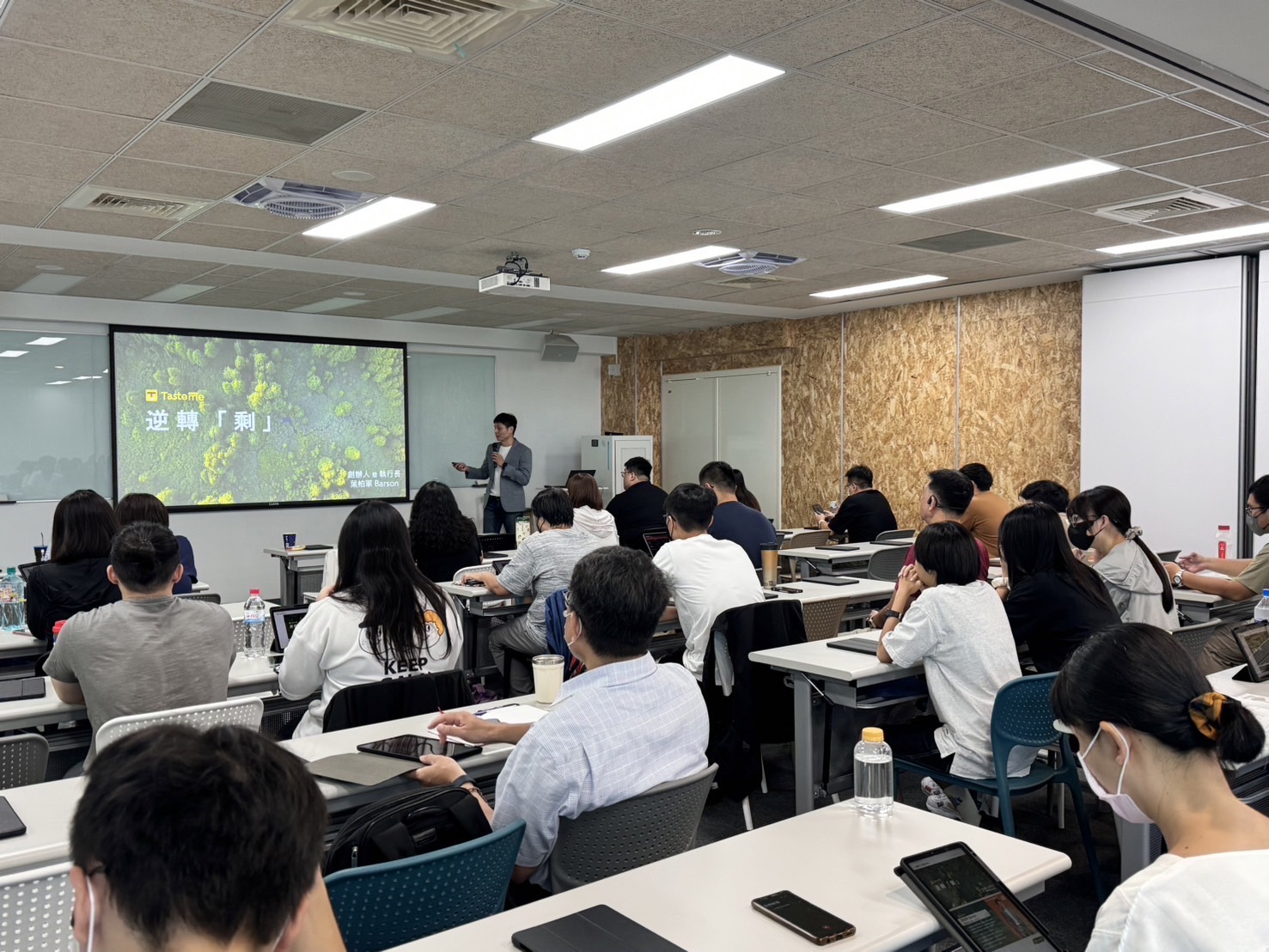 為期兩日、總共 6 小時的「青年學子淨零能力建構專班」訓練課程豐富扎實,活動內容首先由「Tasteme 惜食平台」創辦人葉柏軍從永續趨勢、生活轉型概念切入,接著再由逢甲大學教授周至宏、台北大學教授李育明分別針對國內外法規、盤查、碳減量技術、碳交易進行講授。