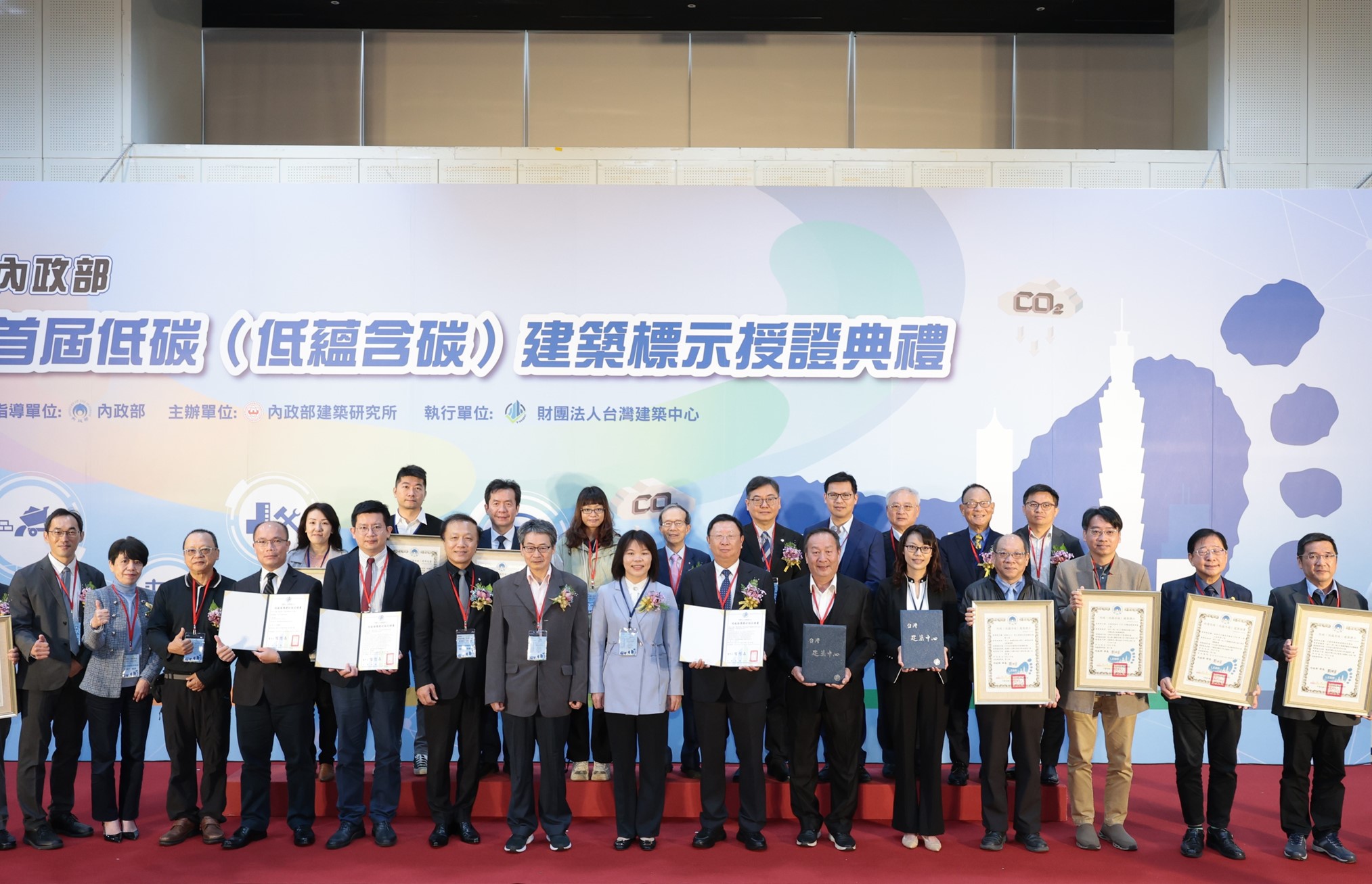 首屆低碳建築標示授證典禮大合照。圖片來源:內政部