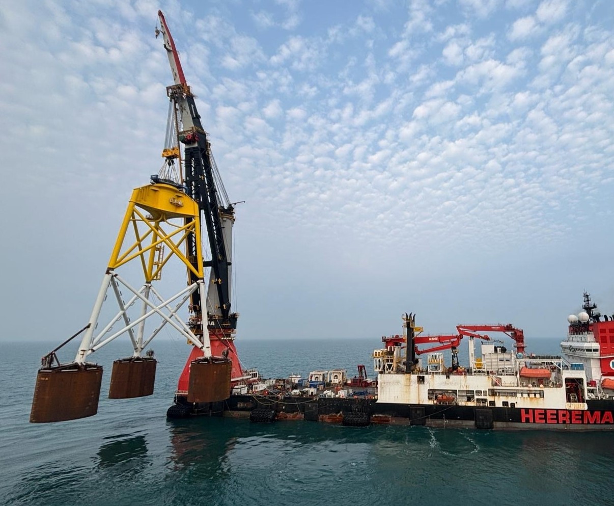 沃旭能源近日在彰化外海順利完成台灣首座「管架式負壓沉箱水下基礎」(suction bucket jacket foundation, SBJ)安裝作業,成為亞太地區率先啟用無需打樁、環境友善的離岸風場。