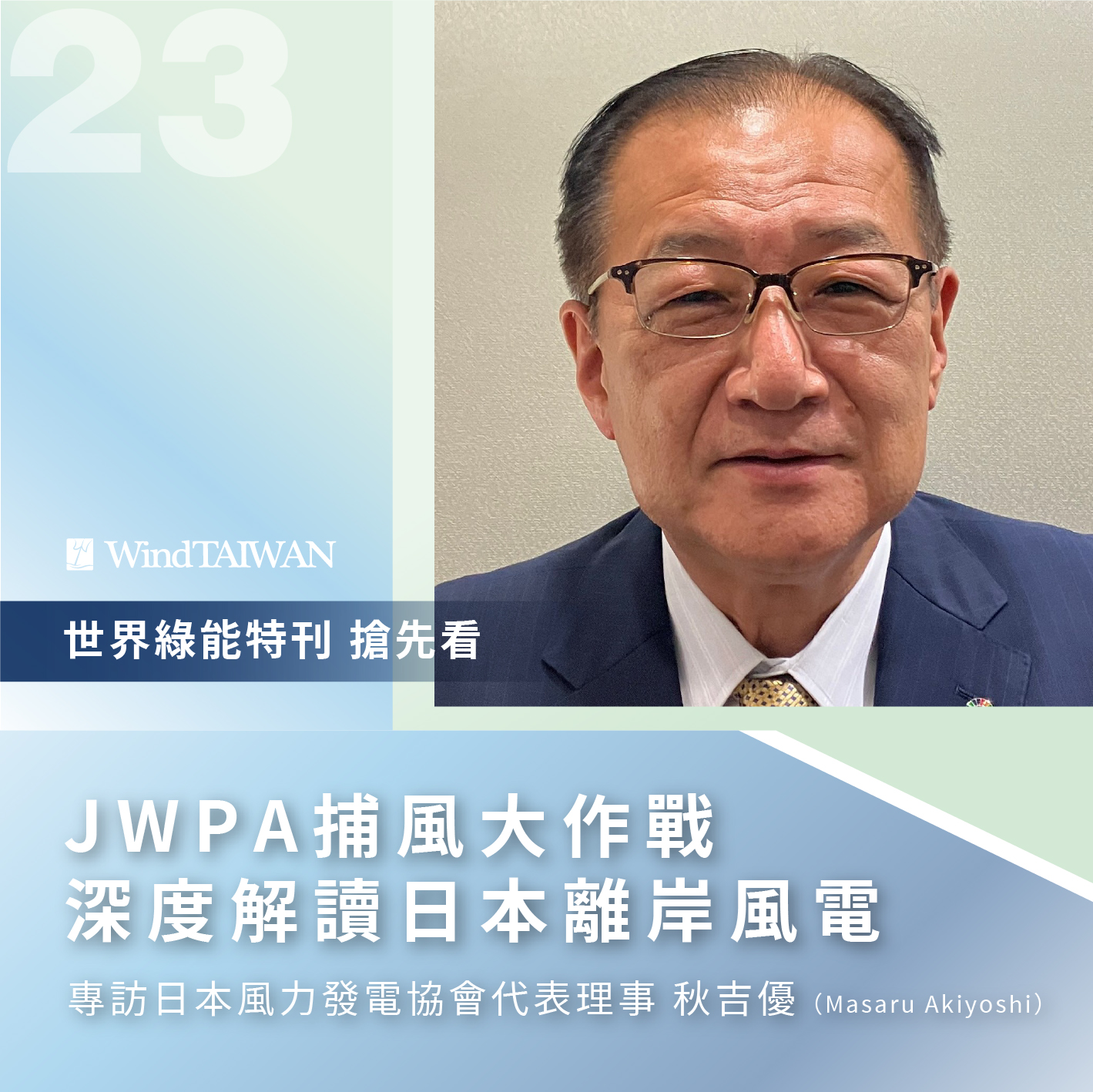 《WindTAIWAN》榮幸在「世界綠色能源趨勢」主題特刊中獨家專訪日本風力發電協會代表理事秋吉優先生,聆聽日本產業界最新動向和看法,盼以此報導搭起台日風力產業界互動交流的橋梁。