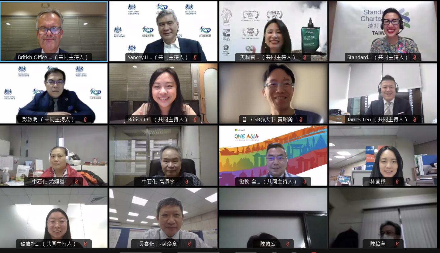 英國在台辦事處與台灣氣候聯盟於昨(28)日共同主辦「邁向淨零排放:企業的關鍵角色」線上論壇,邀請來自英國專家及具影響力且承諾淨零排放的台灣企業,分享其採取氣候轉型邁向淨零排放的策略,並進一步提供台灣企業減排氣候行動的實務經驗。共有超過 150 家台灣企業、團體及機構共同響應,於線上討論企業採取氣候行動的必要性,並鼓勵台灣企業承諾2050 年實施淨零排碳,共同對抗氣候變遷帶來的衝擊。