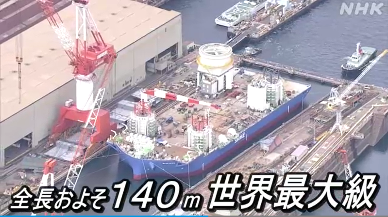 世界最大規模離岸風電工作船Blue Wind昨(23)日在日本廣島縣吳市造船廠正式公開。