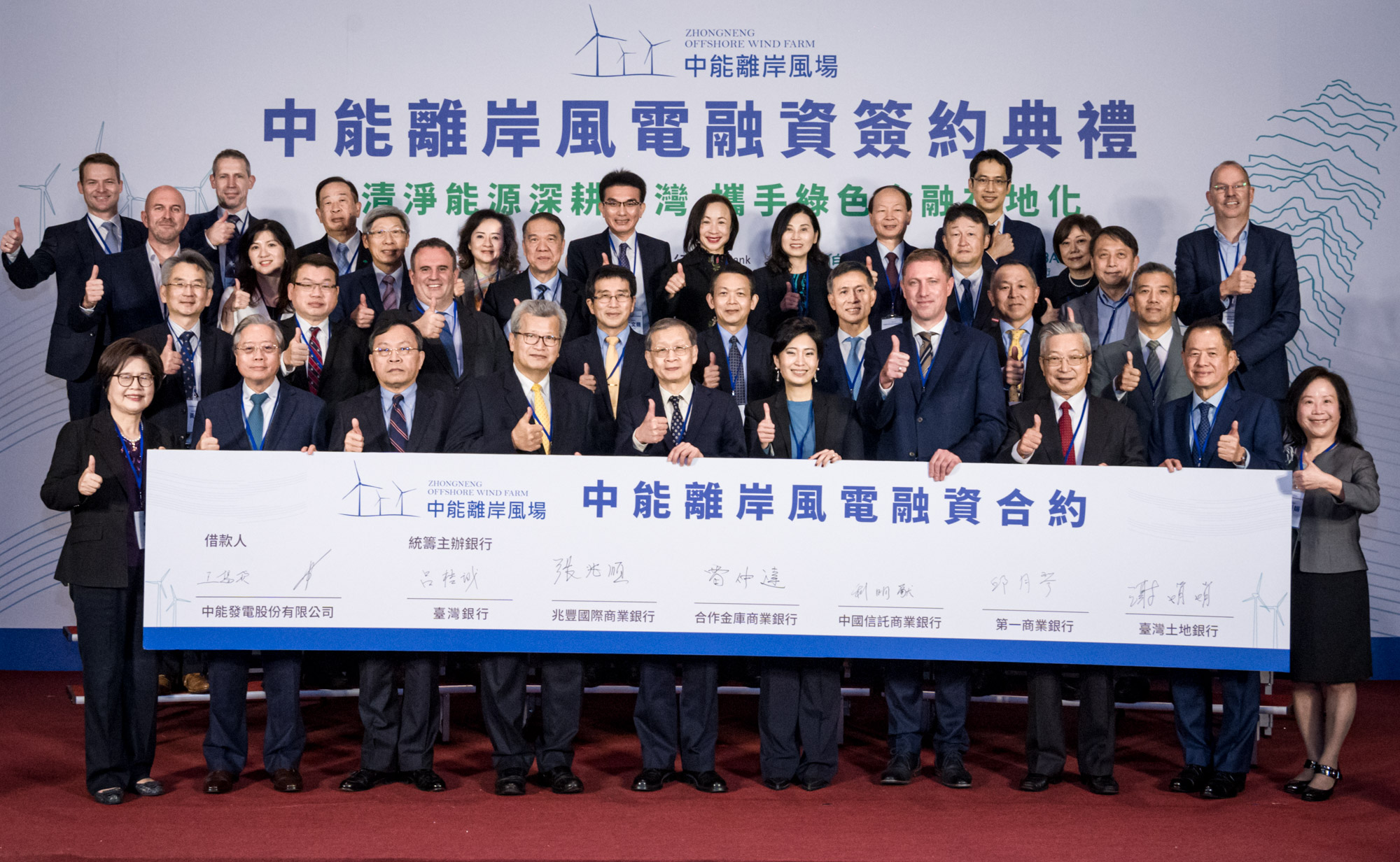 中能離岸風電計畫(以下簡稱:中能風場)昨(24)日宣布,本次聯貸與國內外共計20間國內外銀行機構共同參與,更係國內公股銀行首度聯手參與台灣離岸風場專案融資,成功籌組逾新台幣400億元專案融資,顯示台灣綠色金融之發展往前跨出一大步。