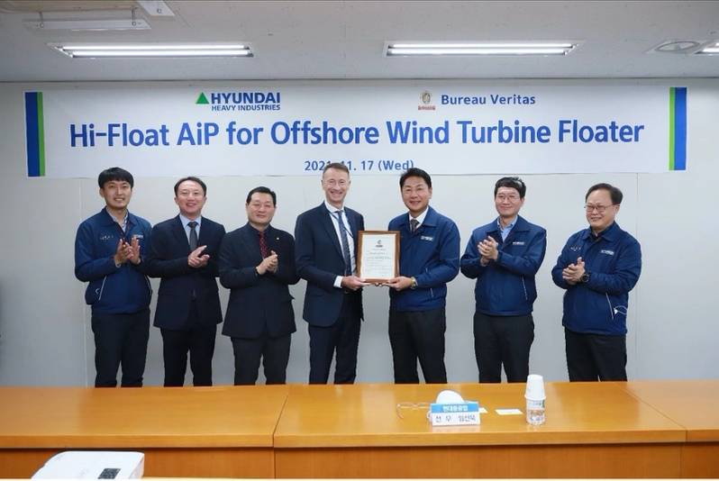 必維國際檢驗集團 (Bureau Veritas, BV) 已授予現代重工有限公司 (Hyundai Heavy Industries Co., Ltd, HHI) 其設計和開發『Hi-Float』浮式離岸風機基礎的原則批准函 (Approval in Principle, AiP)。