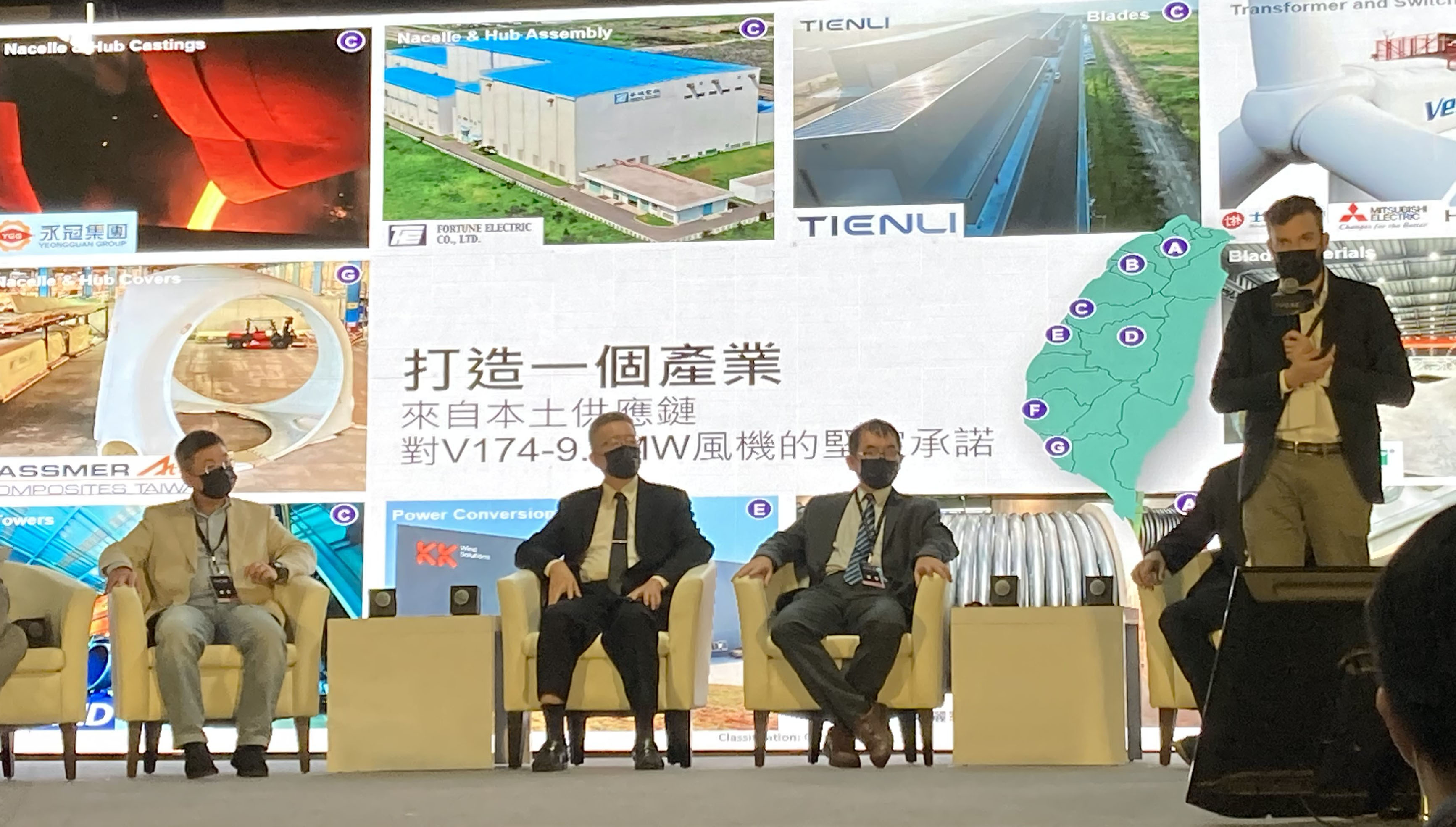 台灣維特斯總經理Alex Robertson在12月4日於高雄蓬萊倉庫舉辦之『2021 TWCAE高雄綠能產業論壇』展示離岸風機V174-9.5MW在地化成果;為生產組裝19項風機零組件,共同投資已達約新台幣90億、就業人數超過1,500人;未來將引進V236-15.0MW機型高達261公尺(高於台北站前新光大樓),期待與台廠新舊供應鏈廠商溝通後可啟動國產化。