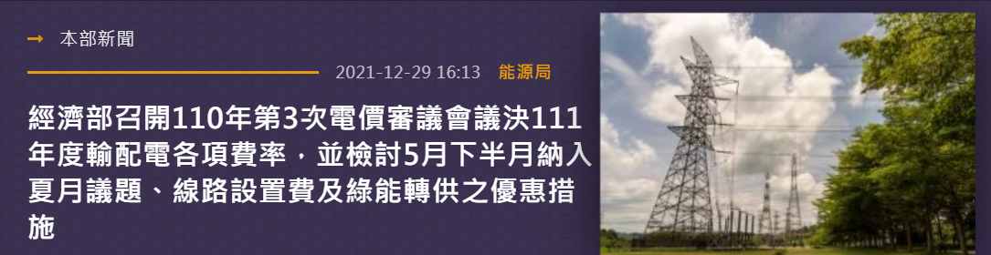 經濟部昨(29)日召開110年第3次電價費率審議會,決議111年度輸配電業各項費率,並針對線路設置費、綠能轉供優惠措施及5月下半月納入夏月電價議題進行討論。