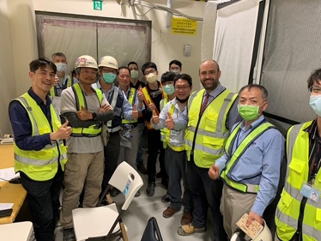 彰芳西島風場陸上變電站團隊、統包商東元電機測試團隊與 SCADA 承攬商雷力科技在最終測試成功完成後合影。圖片來源:CIP