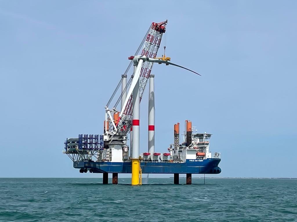 聖納澤爾風場正在安裝首座風機。圖片來源:EDF Renouvelables / LinkedIn