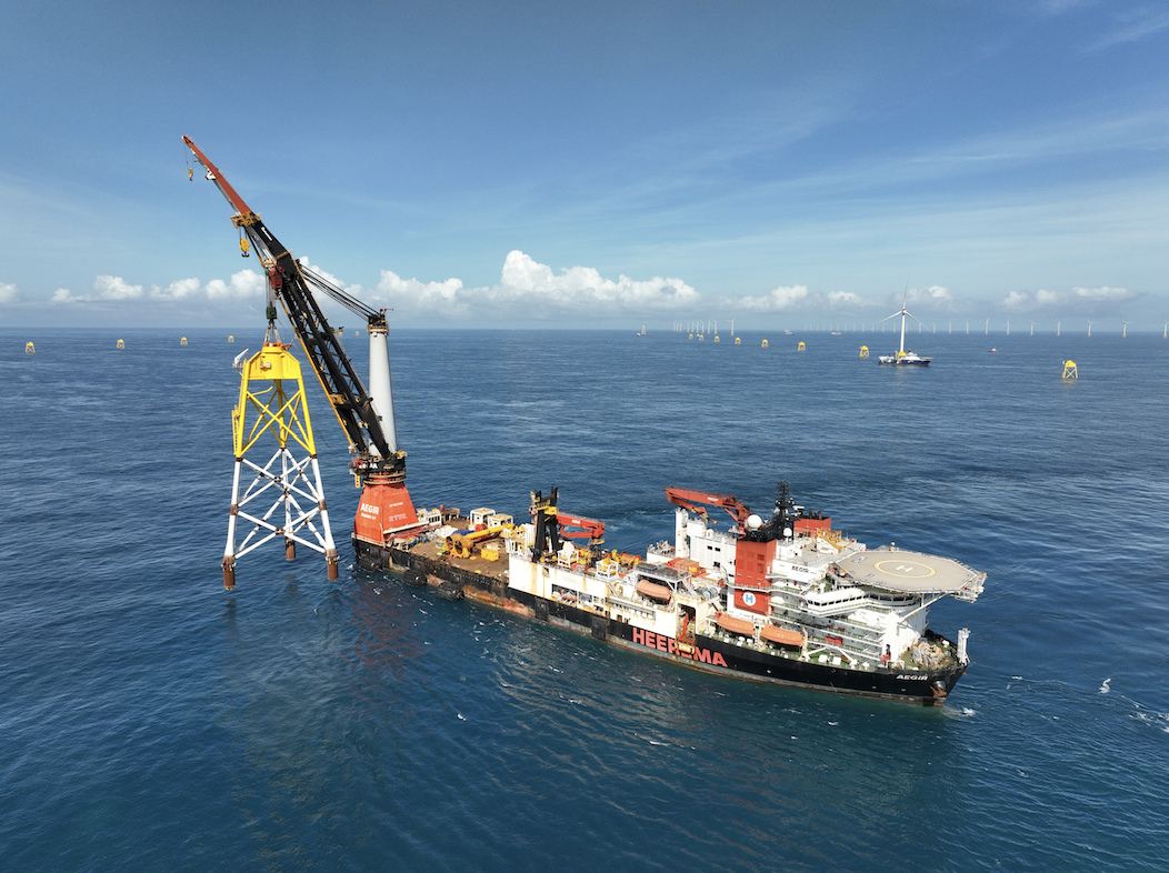 大彰化東南及西南第一階段離岸風場自去年 3月 展開海上施工以來,水下基礎安裝工程有來自全球各地不同國籍、超過 500 人施工團隊,及超過 30 艘國內外船舶支援。包括來自荷蘭 Heerema 海事工程公司派出多艘重型運輸船協助水下基礎載運、重件安裝船 Aegir 協助水下基礎安裝,還有降低打樁噪音的氣泡帷幕船、基樁清理船、穩固水下基礎的灌漿船等。大彰化風場水下基礎施工過程也攜手本地海事工程業者,包括東方風能、歐潽士海洋風電的人員運輸船;台灣港勤公司、保時嘉里潔能的戒護船;國際海洋的減噪船等。