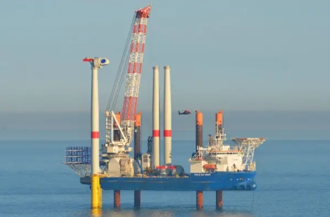 楊德諾集團昨(9/13)日表示,該風場第一座風機在 4 月時啟動安裝,出動集團船隊中的自升式平台船 Vole au Vent 進行工程,並已於 9 月 5 日完成所有風機安裝,工程進度大幅超前。