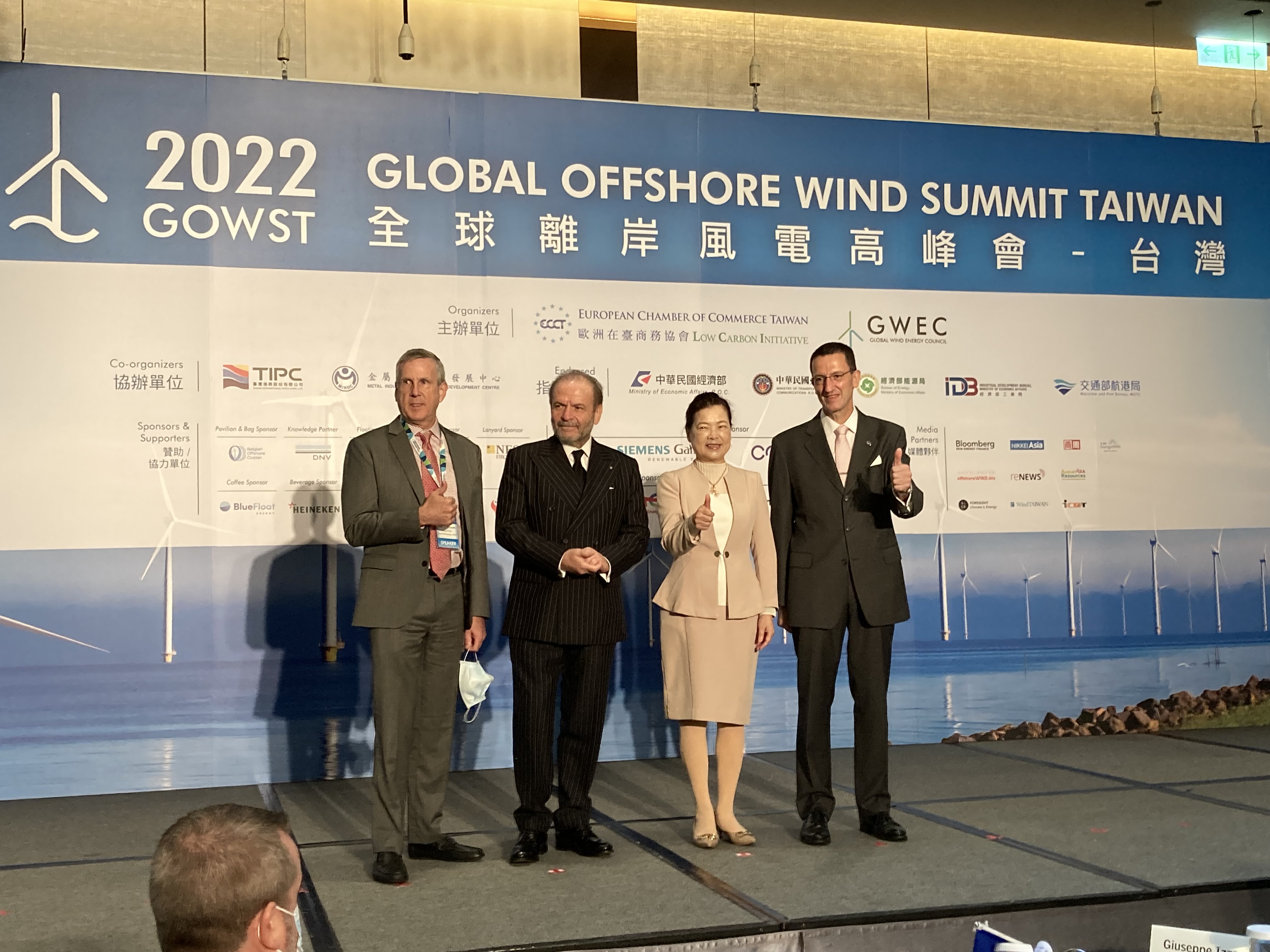 由全球風能理事會(GWEC)與歐洲在臺商務協會--低碳倡議行動(ECCT-LCI)共同舉辦之「2022 全球離岸風電產業高峰會——臺灣論壇」今(10/17)於艾美酒店正式啟動兩天活動。現場聚集台灣相關政府部會官員、國內外離岸風電產業重要人士及意見領袖,將針對台灣離岸風電國產化政策、港口基礎建設發展、亞太區域供應鏈合作、風機技術、船舶和離岸風電物流策略、浮動式風機、台灣再生能源購售電合約市場進行主題演講及分組討論。