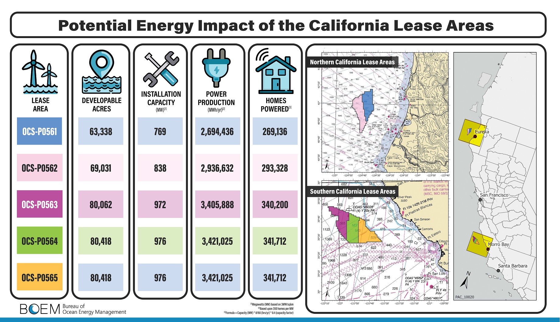 美國海洋能源管理局(The US Bureau of Ocean Energy Management,BOEM)正在出售的離岸風電租約,位於加州(California)北部及中部外海的外緣大陸棚(Outer Continental Shelf,OCS)上。這是美國西岸史上首 5 座租約出售風場,同時也是美國史上首度支持「商業規模浮動式離岸風電」發展的競標。