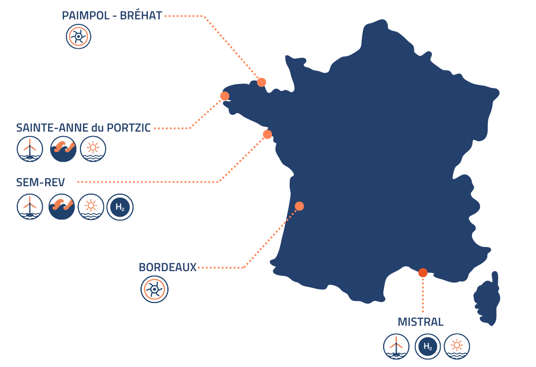 OPEN-C 基金會負責協調、開發和管理浮式風機、潮汐能發電機、波浪能、海上氫能和浮動式太陽能等多種技術面向的海洋試驗,並匯集了 5 個海上試驗場,包含 Paimpol–Bréhat、SEM-REV、Bordeaux、Mistral,及 Sainte-Anne du Portzic,受益於非常不同的研究條件,並致力於在法國所有海岸線上測試最具創新性的原型機組。