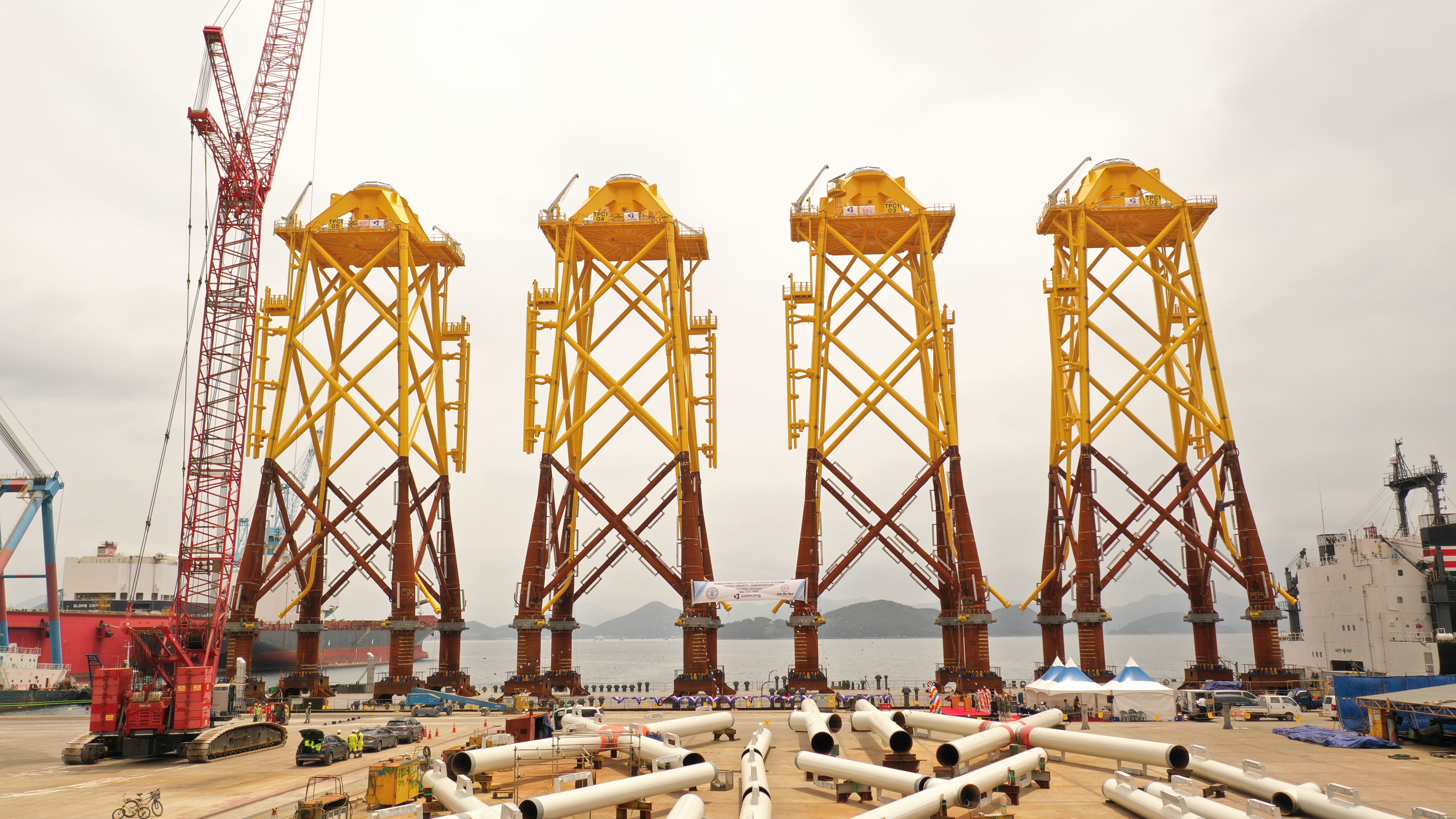 • 下部桁架 U 型板和平構面的焊接和翻正,包含安裝 J 型管、陽極防蝕和夾樁系統
