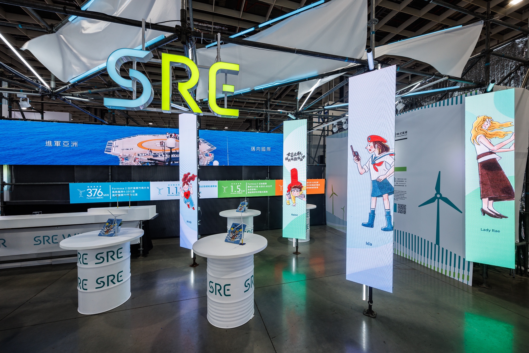 在 2022 年,SRE 持續推動綠色環保理念,再次引領潮流,將在地漁港風情帶入展場、創新打造「SRE Wind Bar」同時延續接近零廢棄物的環保目標,進一步提升到 99% 皆使用可回收材料,亦廣泛採用 LED 螢幕和多媒體設備呈現離岸風電實景,結合海風、自然音效等豐富的影音元素,為觀眾帶來了沉浸式的五感體驗,引起廣大迴響。風睿能源憑著永續與減碳的展場設計,在「台灣國際智慧能源週」首屆永續獎當中,一舉拿下首獎(白金獎)的最高榮譽。