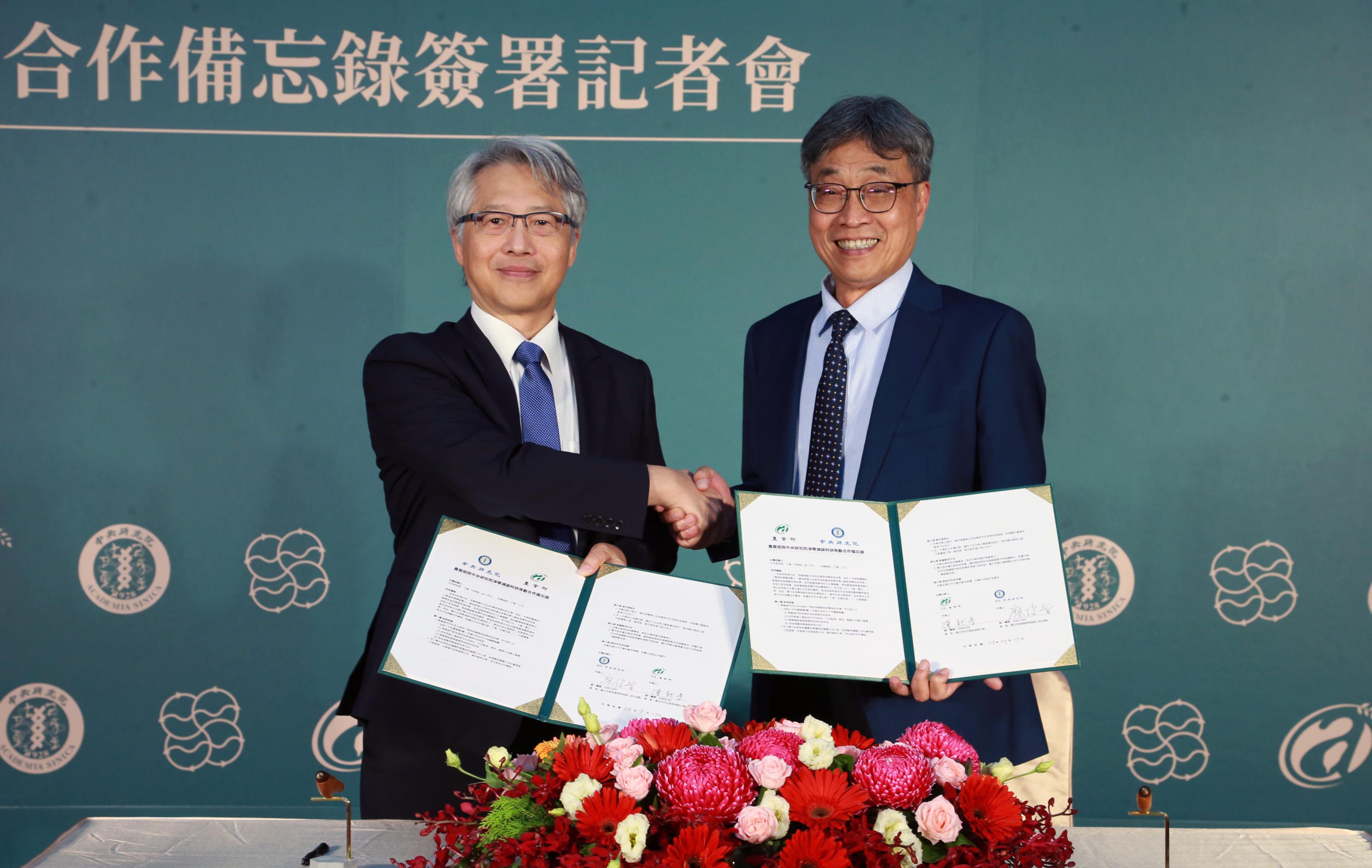 中研院廖俊智院長及農業部陳駿季部長簽署合作備忘錄。圖片來源:農業部