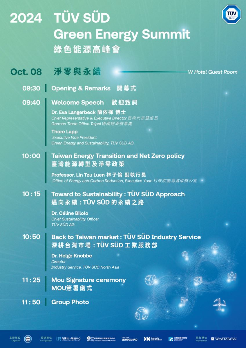 上午議程由TÜV SÜD高層的專題演講揭幕,解析企業如何在推動綠色能源轉型中發揮關鍵作用,並展示台灣最新的能源轉型政策與實踐。此外,會議將進行多項重要的MOU簽署儀式,代表跨國合作與產業共識,展示未來合作的深遠影響。