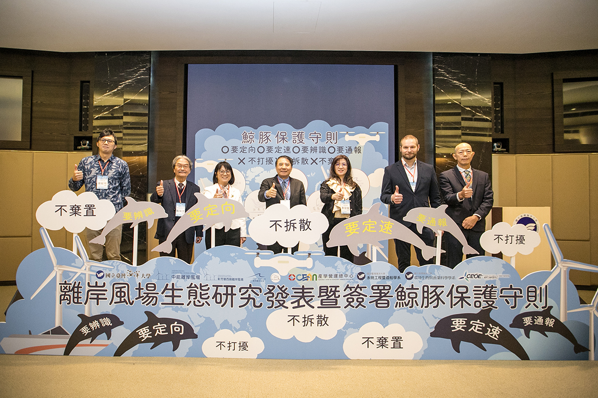 臺灣海洋大學於 12 月 23 日舉辦「離岸風場生態研究發表會暨簽署鯨豚保護守則簽署儀式」。圖片來源:國立臺灣海洋大學