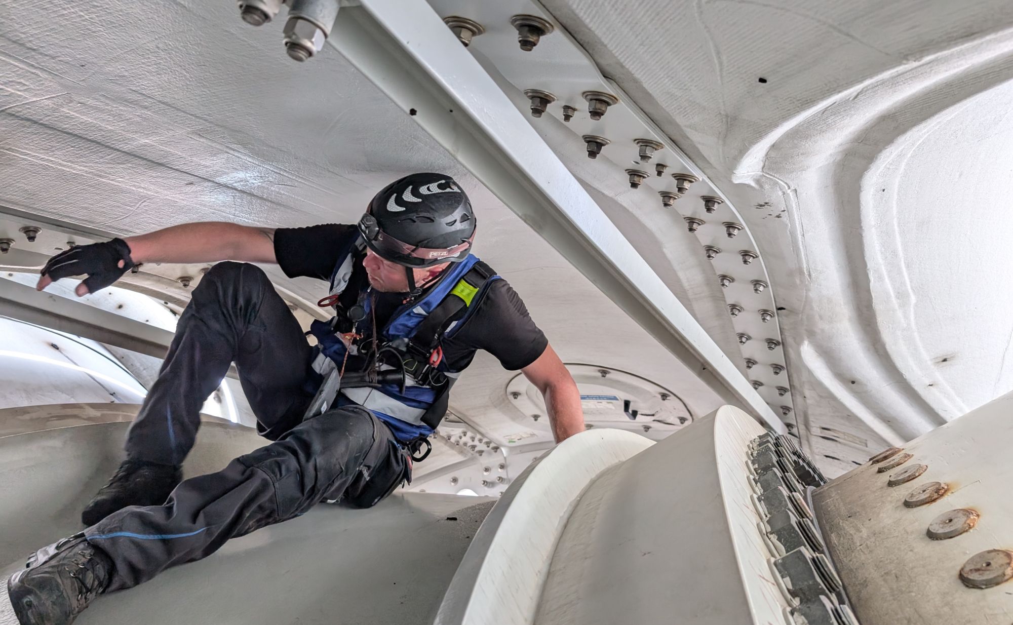 德國萊因專業人員進行風場各類項目檢查鋼結構。圖/德國萊因提供