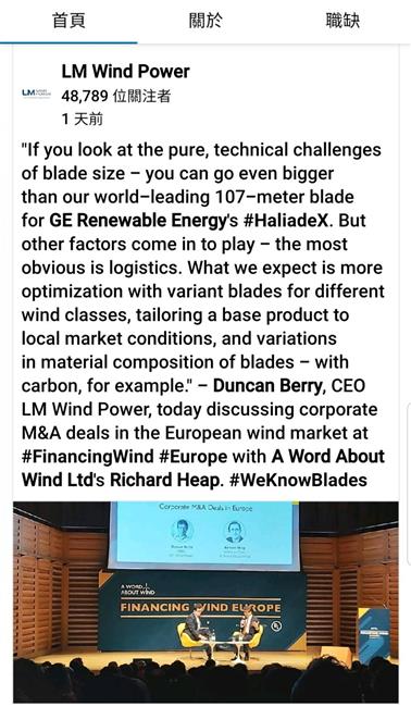 LM Wind Power 執行長: 葉片尺寸巨大化是趨勢 但功能最佳化不能忽視